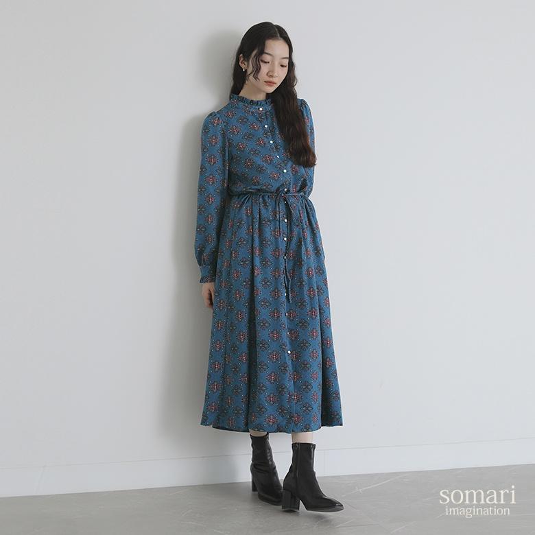韓国ワンピース 個性的花柄が大人可愛いエスニック風ワンピース 韓国 ワンピース ドレス 通販レディースmarron マロン